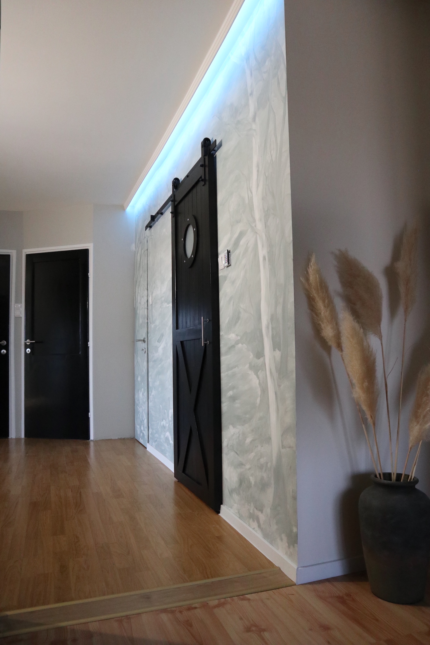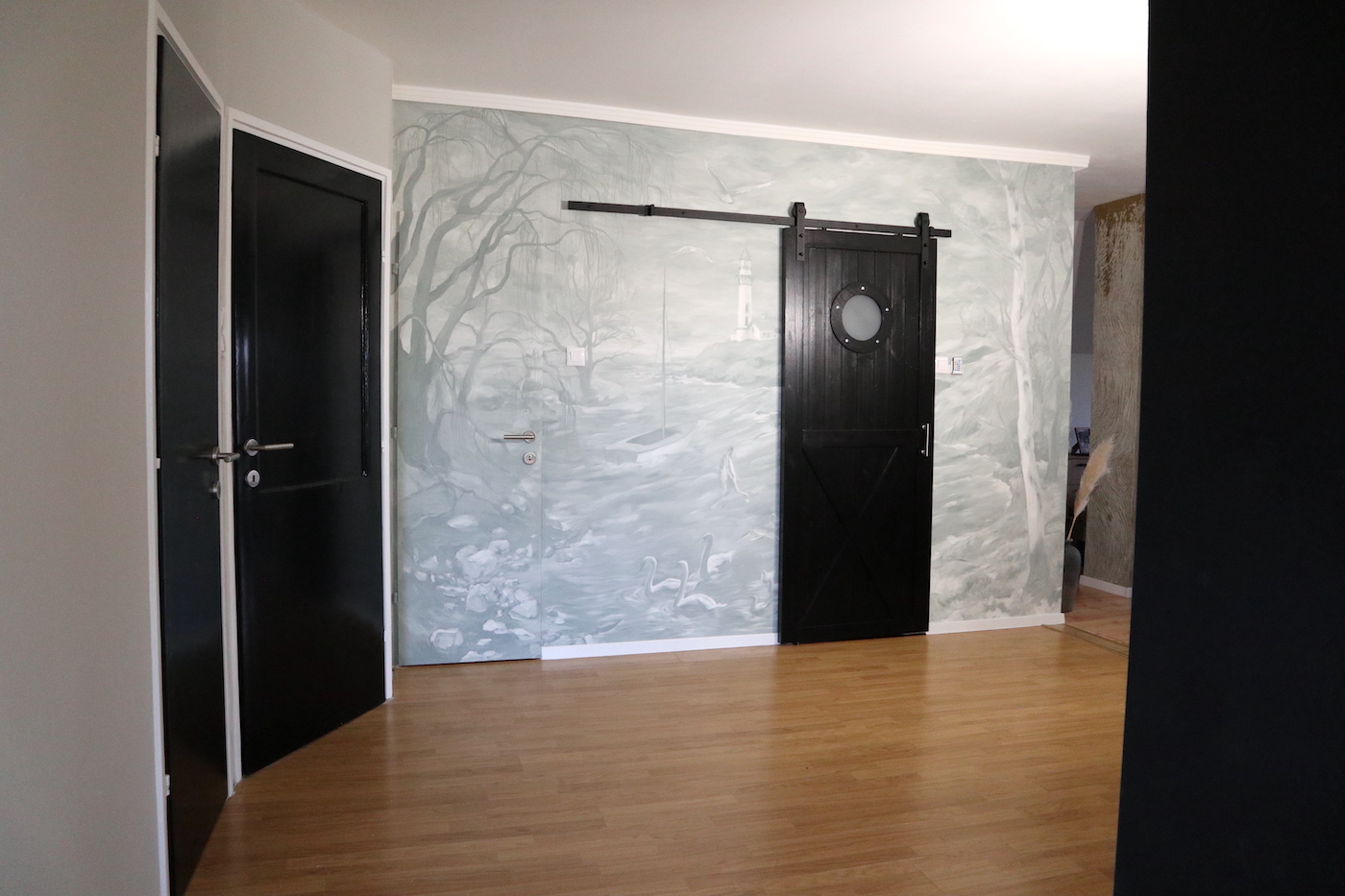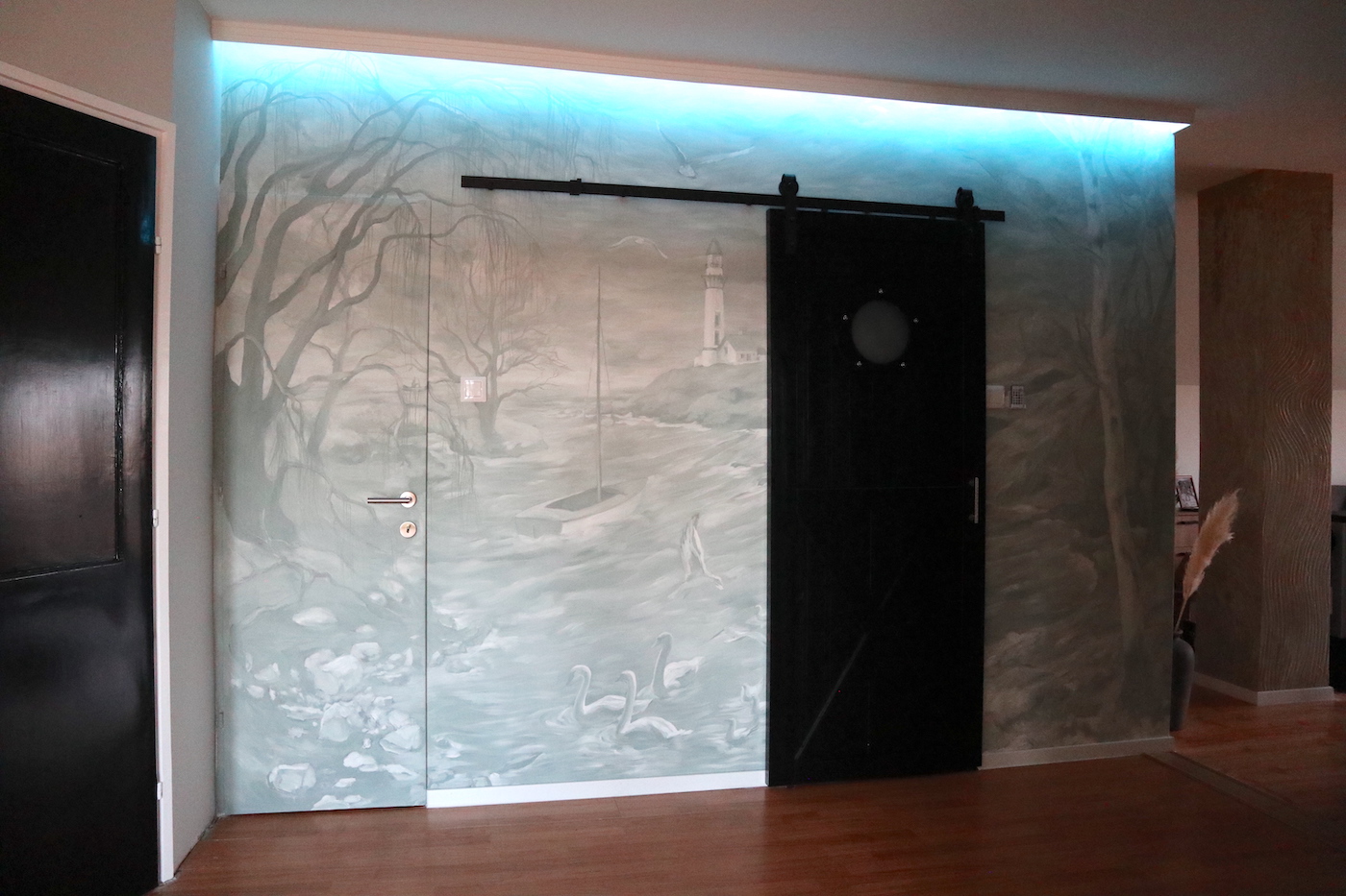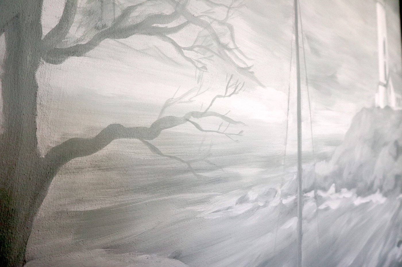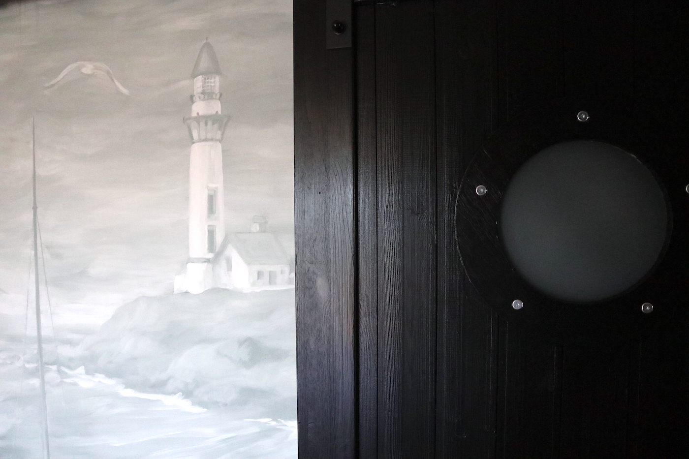 A falfestményt a világítótorony romantikája és a Balaton ihlette. E kettő ötvözéséből jött létre a zöldesszürke tónusaival megfestett falkép, amely egy "titkos" ajtót is magába foglal.